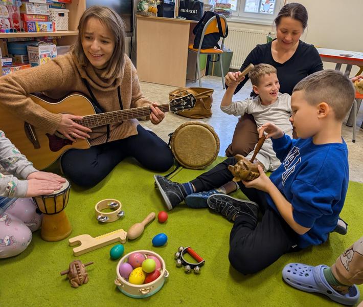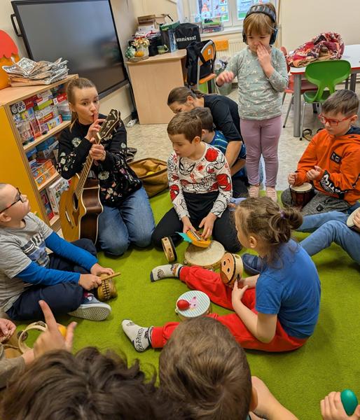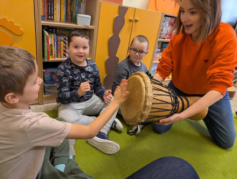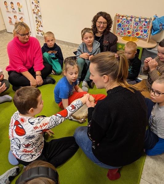 Dzięki współpracy z Stowarzyszeniem "Z Muzyką Do Ludzi" nasze przedszkolaki przez kilka czwartków w październiku i listopadzie rozpoczynają dzień muzycznie. Razem z panią Natalia Łucja Wawrzyniak doświadczamy łagodzącego wpływu dźwięków, za co z całego serducha dziękujemy.